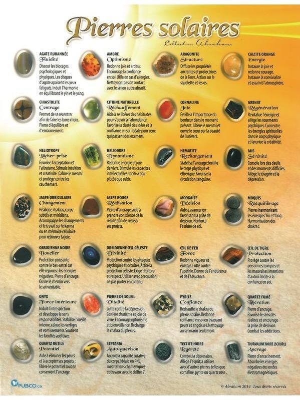 Planche double A4 plastifiée reprenant les propriétés des différentes Pierres en lithothérapie ainsi que leurs modes d'utilisations. 28 Pierres solaires et 28 Pierres lunaires y sont présentées, des plus connues, aux plus rares. Cette double planche vous exposera les bases de l'utilisation puis de l'entretien de vos Pierres (nettoyage et rechargement). Un décagone, outil pour dynamiser vos Pierres, est représenté sur une page. Le décagone est une figure géométrique utilisée comme onde de forme en radiesthésie. Il vous permettra d'augmenter le taux vibratoire de vos Pierres. NB : toutes les informations sont données à titre purement indicatif selon la lithothérapie. En aucun cas l'utilisation des minéraux ne saurait se substituer à un diagnostic ou traitement médical et thérapeutique.